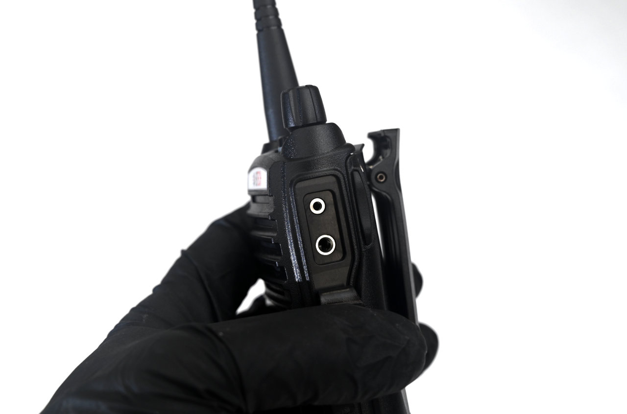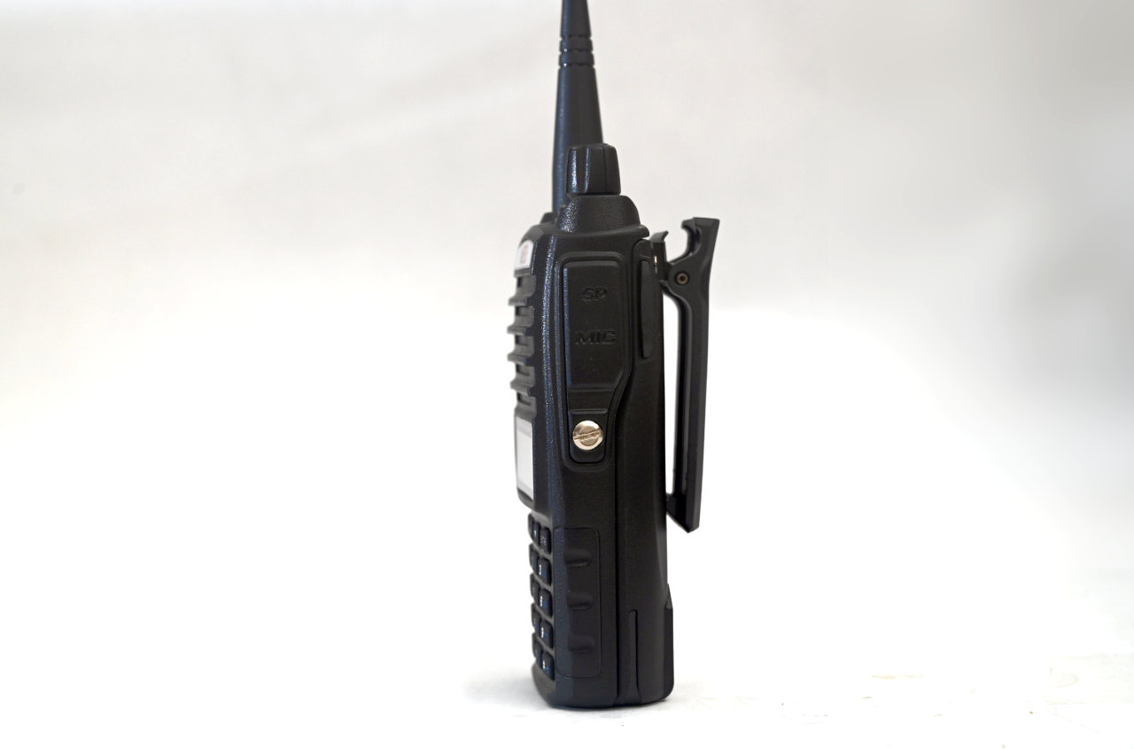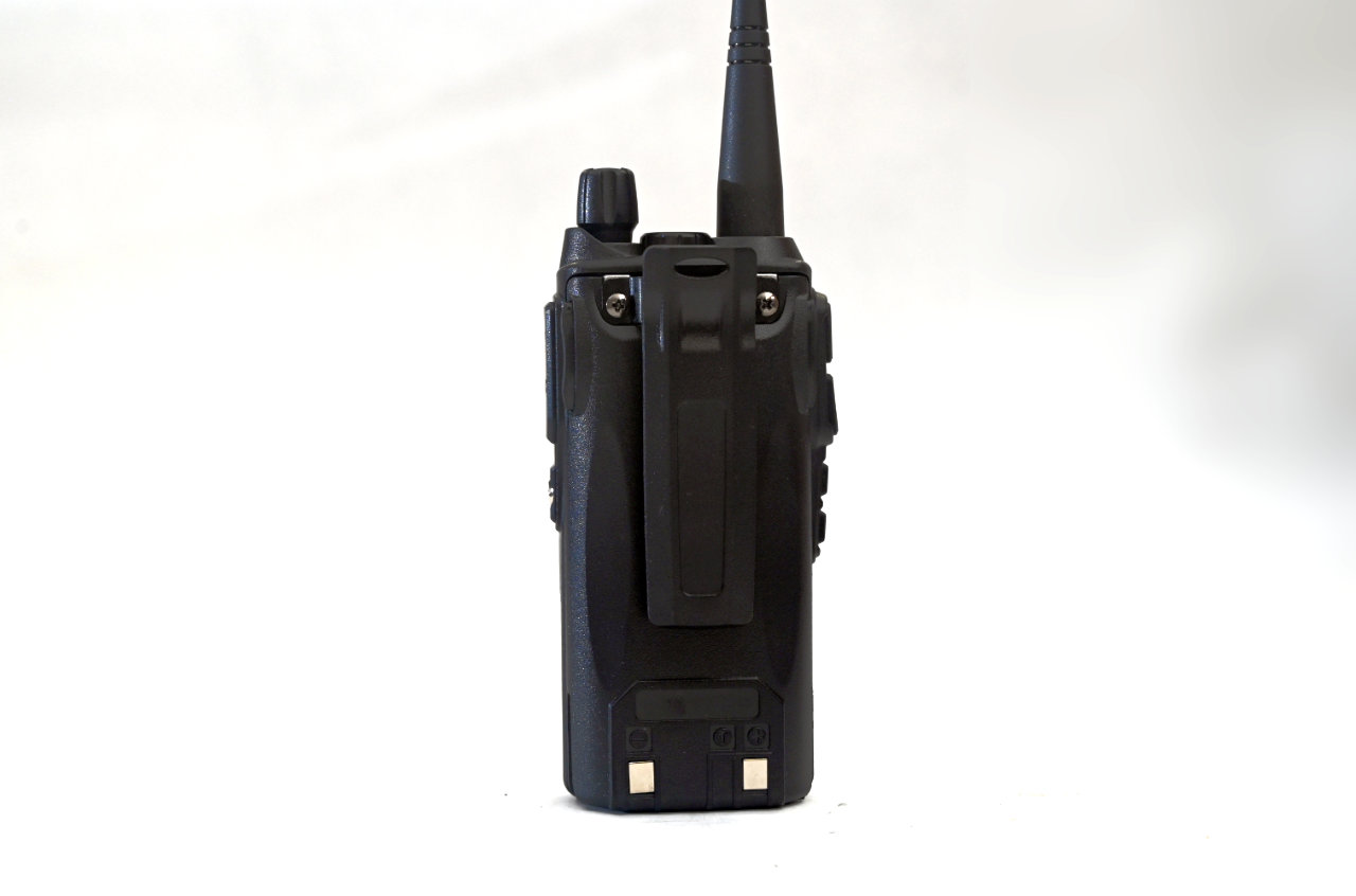 The belt clip on the back of the Btech MURS V2 is very stable, long enough to hold on to virtually any belt, and has an angled piece at the bottom to make sure that the radio does not come loose whether clipped to your belt, in your pocket, or on your seatbelt.