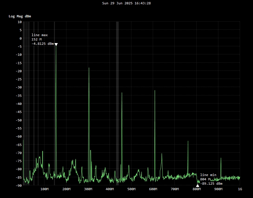 The spectrum analysis of this radio is where I got disappointed. The Baofeng UV-82HP has a pretty good-looking spectrum, especially for it age and price range. This radio, however, has an output spectrum that looks like a thumper from Dune. Probably half of the carrier has little to no power, while the other half looks reasonably good. I have no idea what would cause this.
