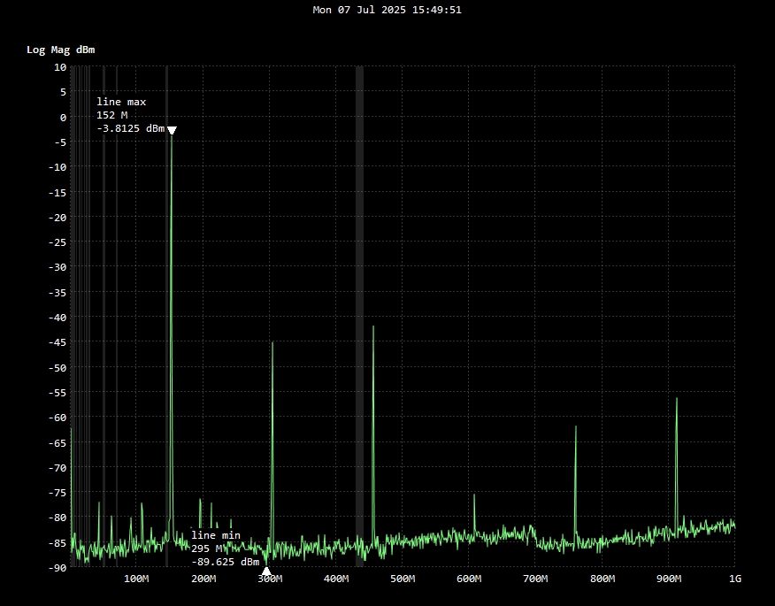 The spectrum analysis shows a reasonably good signal that is slightly inconsistent. It is, however, better than most Baofeng radios. I am not sure how much of a benchmark that actually is, but there it is anyway.