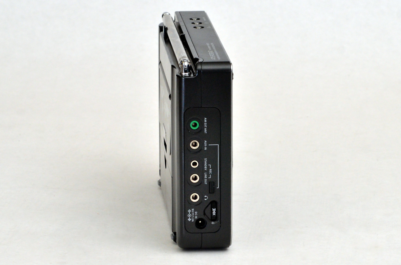 The AM external antenna jack is a welcome port as it vastly increases the signals you can hear and uses a standard 1/8″ or 3.5mm jack. Not only does this fit the cool little reel antenna included with the Sangean ATS-909X2 but is also common with other portable antennas. I even have a 3.5mm adapter for my big dipole antenna I use with my Kenwood TS-570D Amateur Radio Transceiver so I can use that antenna to receive on my shortwave sets.